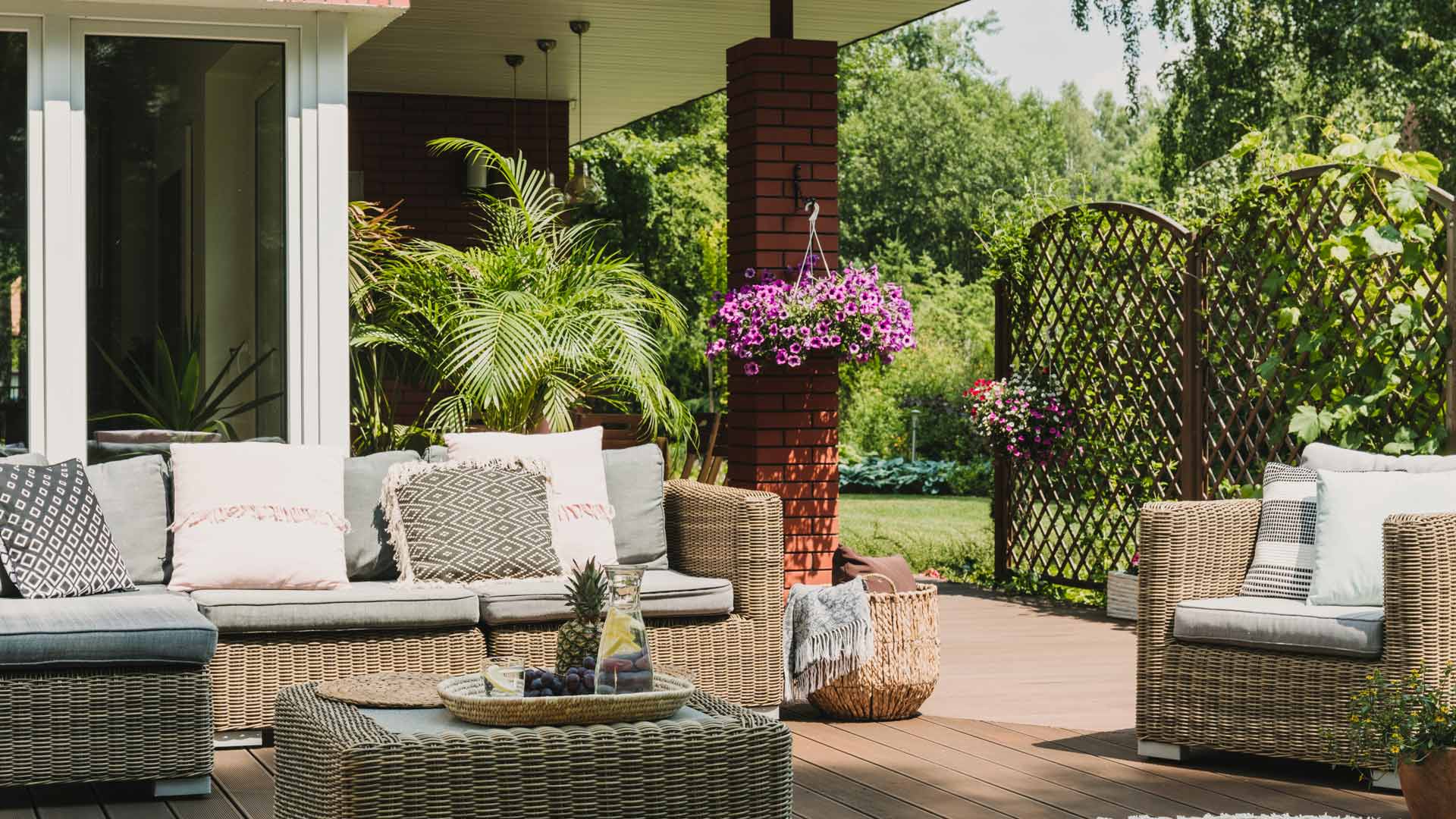 Trellises or lattice walls will give some screening immediately, but once vines grow, you’ll end up with nearly a full blockout.