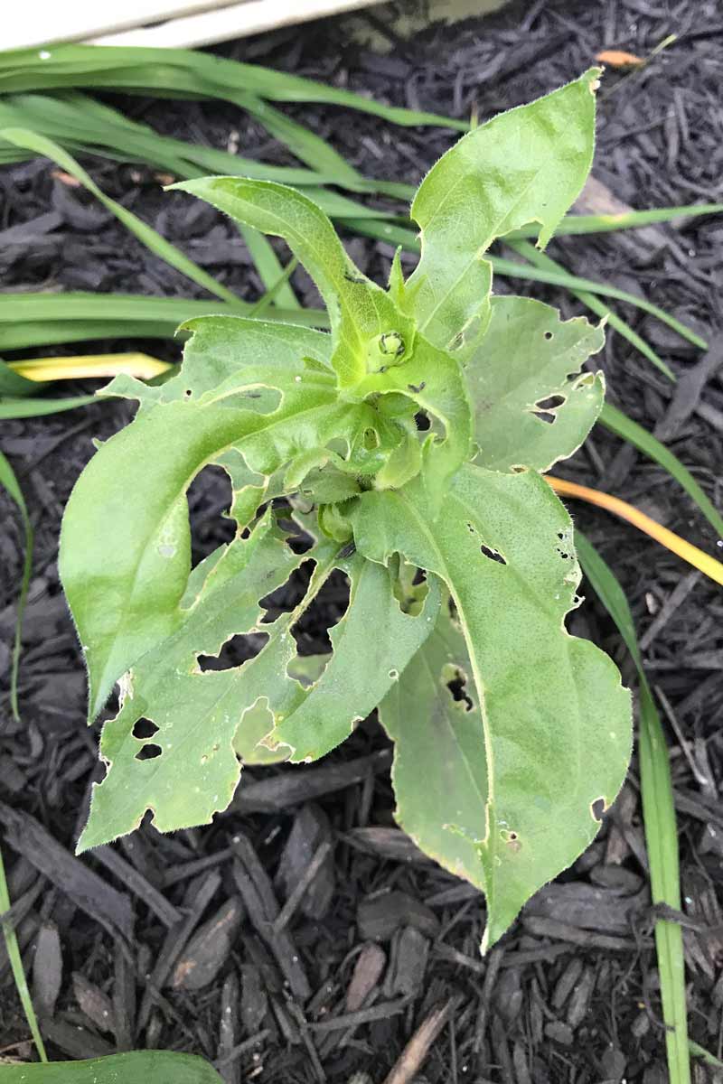 As you can see, the lower leaves on this plant were eaten, but the new growth at the top of the plant is coming in just fine.