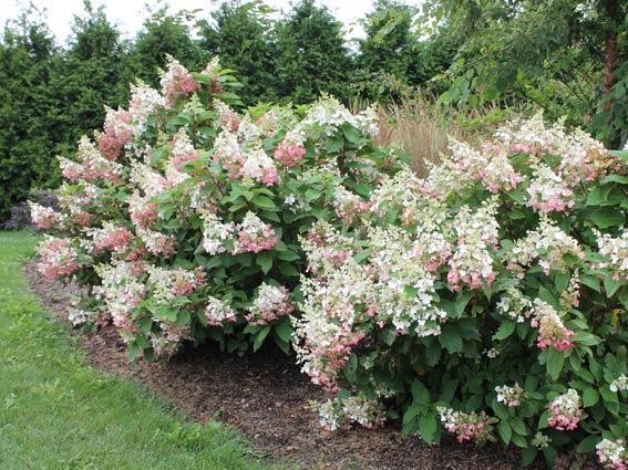These Pinky Winky® hydrangeas are an example of panicle hydrangeas that bloom on new wood, and withstand very cold winters. © George Weigel