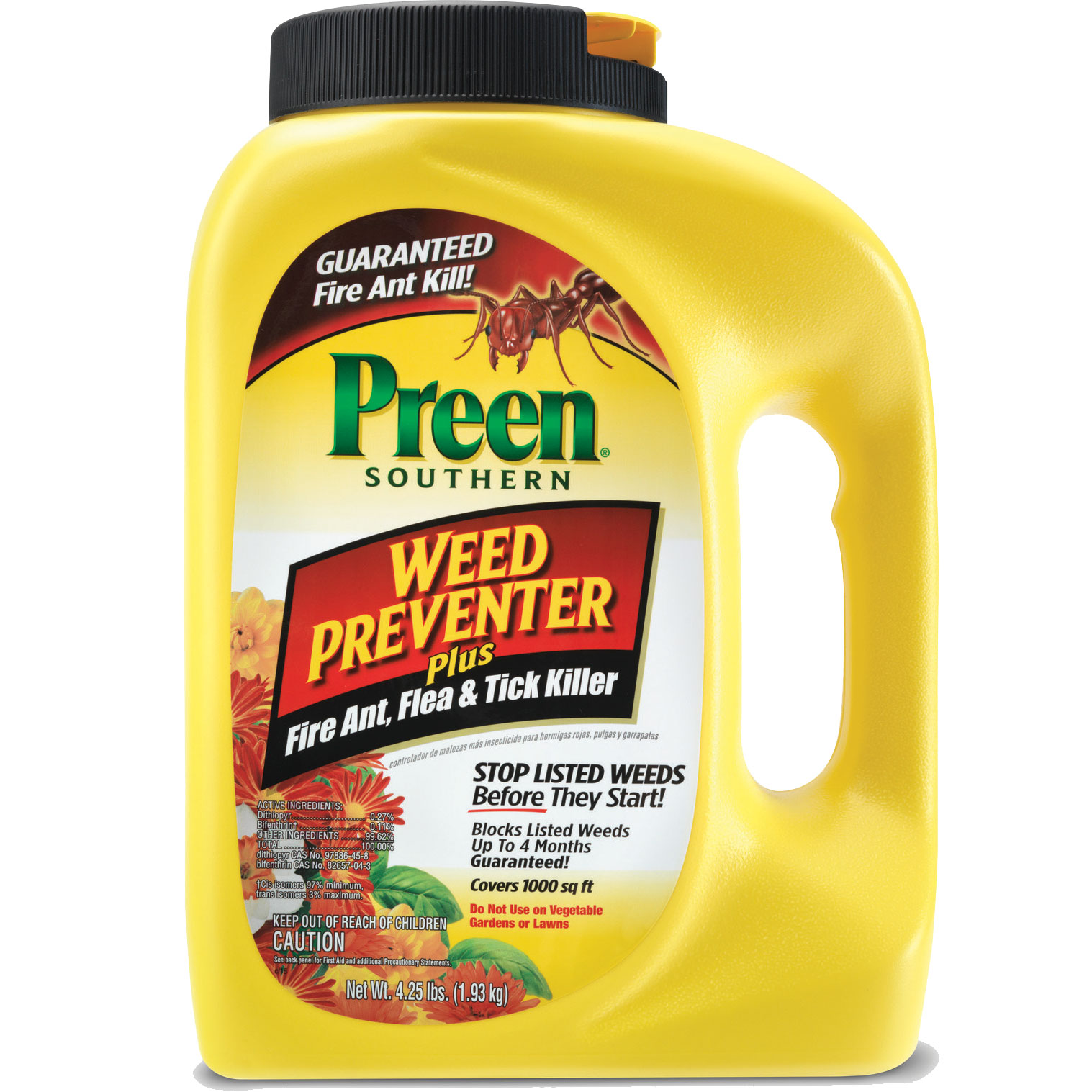 A one-step solution to two major problems that plague Southern gardeners. This dual Preen product stops tough Southern weeds before they start, while also killing listed insects including foraging fire ants, fleas and the ticks that may carry Rocky Mountain spotted fever and Lyme disease.